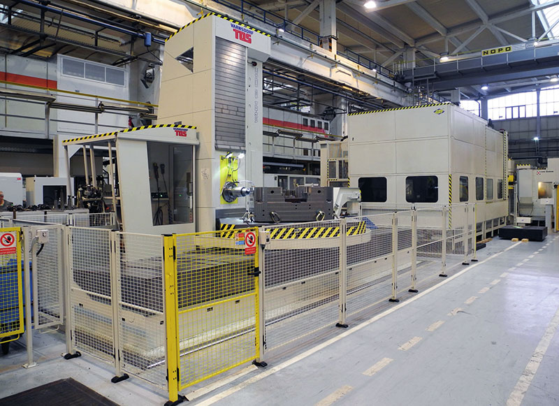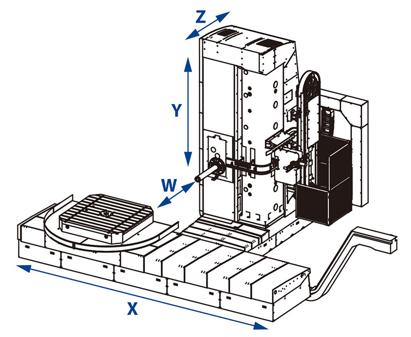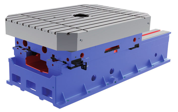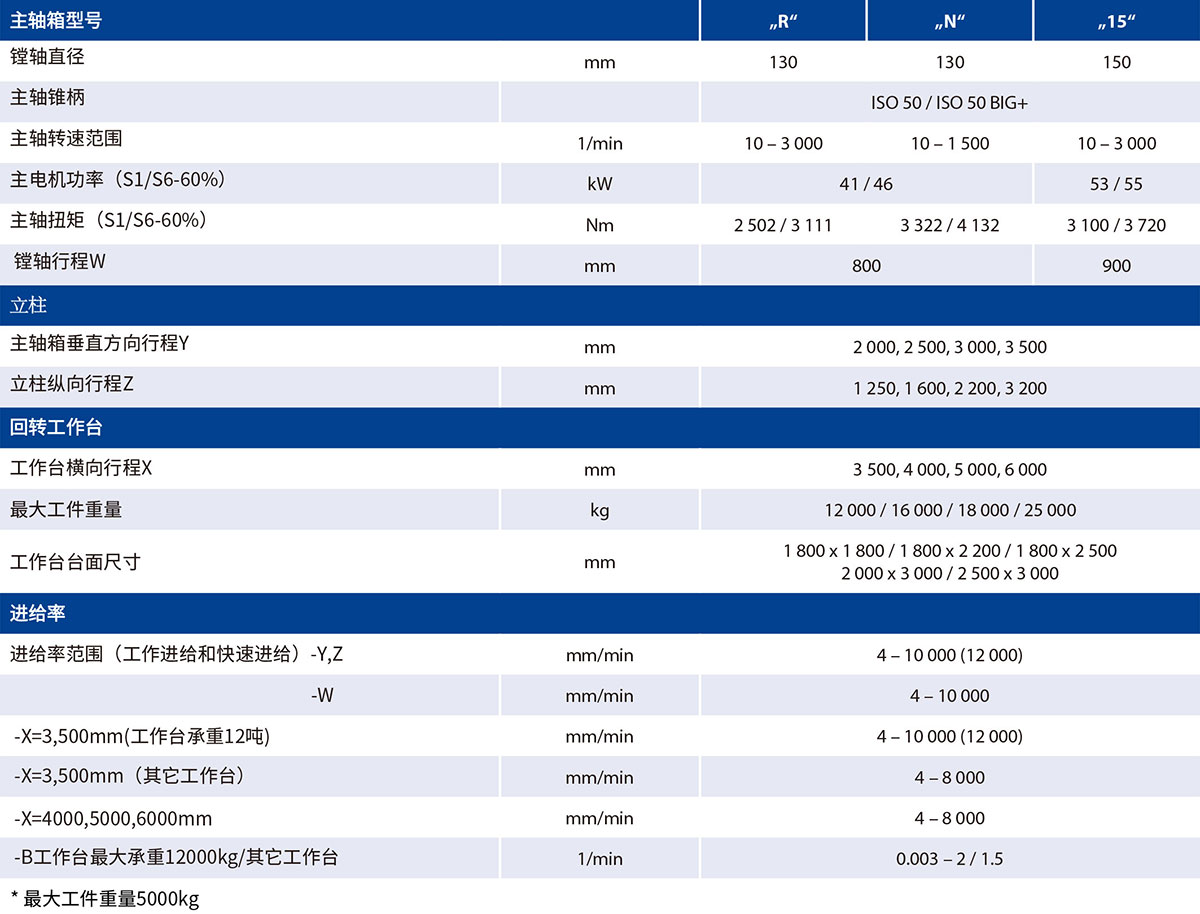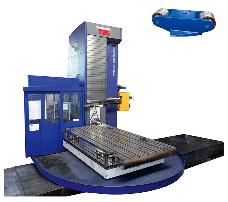 運動部件的導軌 所有直線軸都是滑動導軌。 導軌表面采用激光淬火處理。 硬化鋼板內嵌在導軌表面中央位置,和另一面的滾動軸承單元配合。 配合面有配置低摩擦系數的復合材料。 另外,工作臺下方有四組滾動軸承單元。床身上的導軌都采用伸縮護罩保護,立柱導軌采用鋼板來防護。 工作臺坐落在環形滑動導軌上,重載十字交叉軸承位于中心。 |